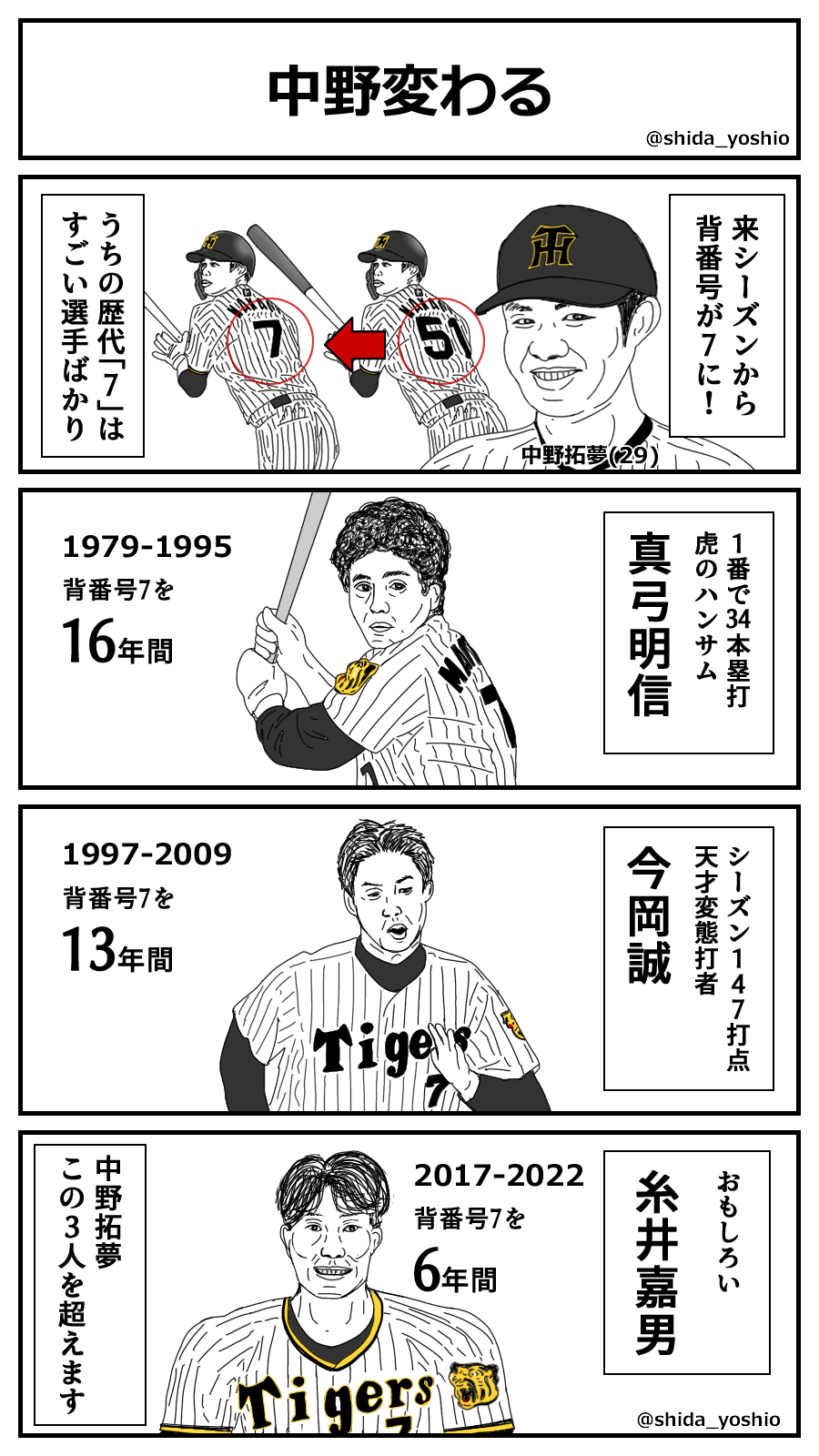 中野はええ番号もろたなぁ。「山形のイチロー」と言われてたのにもったいない気はするけど今や「世界の中野」やもんな。